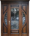 Парадная остекленная дверь МДФ с решетками и карнизом Арт-385